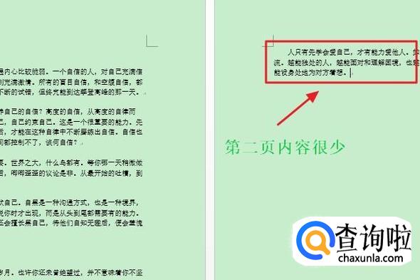 下图是两页Word内容,不过我们可以看的出第二页的内容只有短短几行,如果这种情况下打印是需要两张纸的,如图所示...