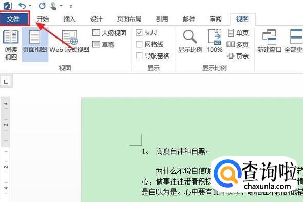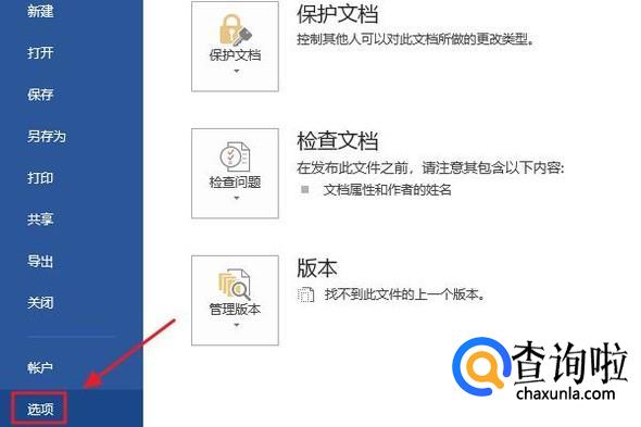 这种情况下,我们可以做以下设置:首先点击文档左上角的“文件”,然后在左侧弹出的窗口中点击“选项”;
