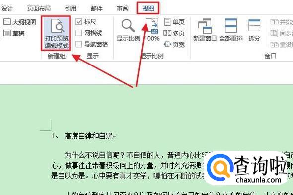 依次点击工具栏的“视图”-“打印预览编辑模式”,然后可以查看打印预览效果,我们发现此时依旧显示的是两页;