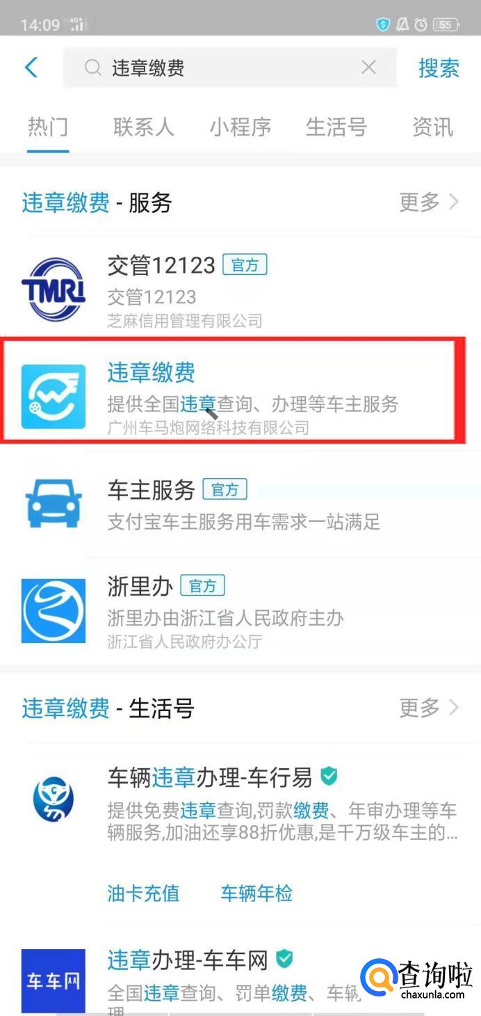 在搜索栏中搜索“违章缴费”。