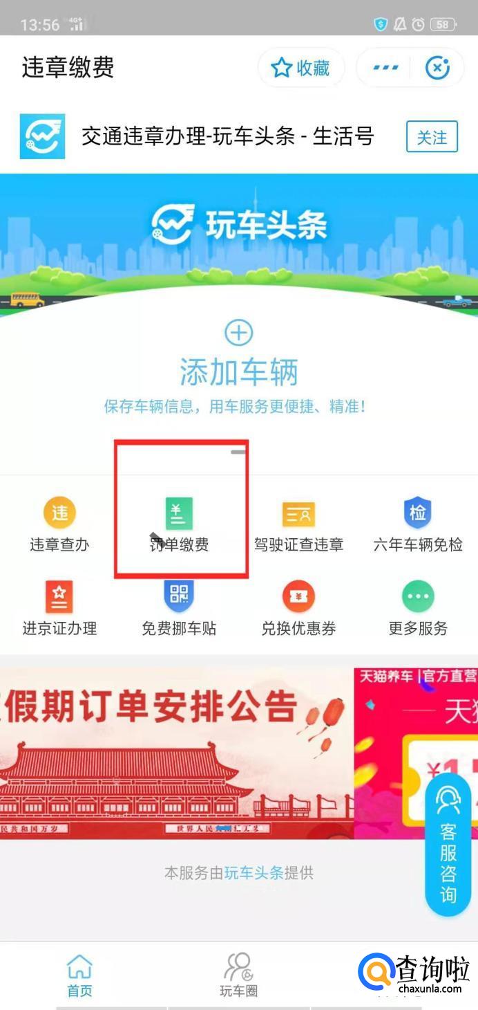 进入违章缴费页面,点击罚单缴费。
