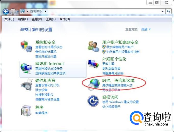 然后在控制面板中点击【时钟、语言和区域】,如下图所示: