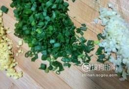 准备配料,将大蒜扒皮切碎,老姜切碎,小葱去掉老叶烂叶备用。