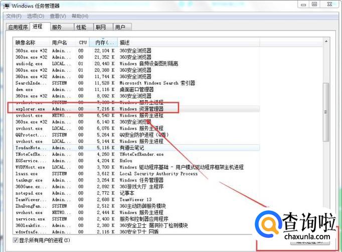 找到【explorer.exe】选项,然后点击下方的【切换进程】,如下图所示: