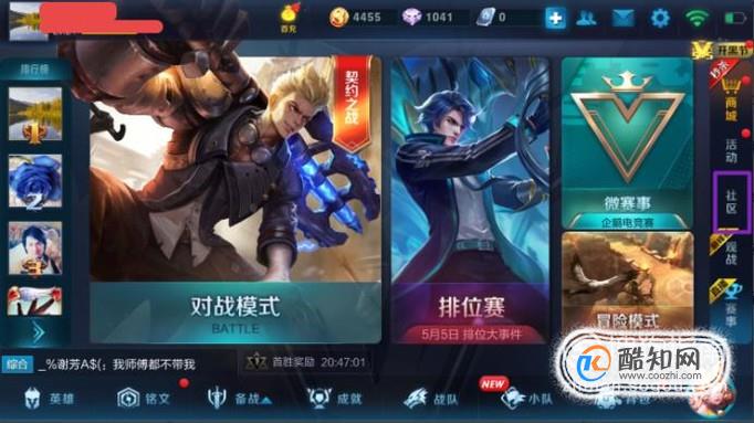 首先,我们打开我们手机上面的王者荣耀,进入后我们点击右边的社区;
