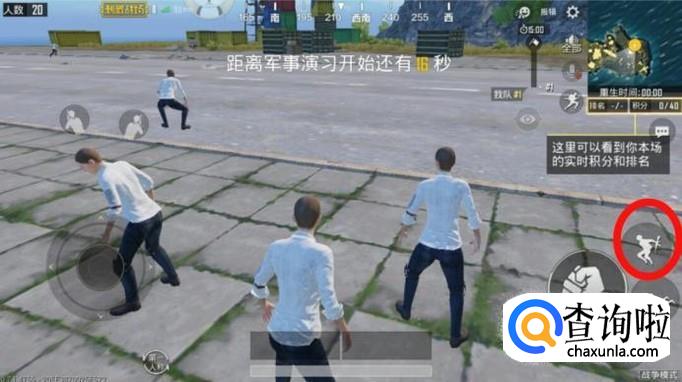 蹲下的操作按钮就是下图小编圈起的地方,点击之后,游戏角色就下蹲了,再次点击就站起来了。