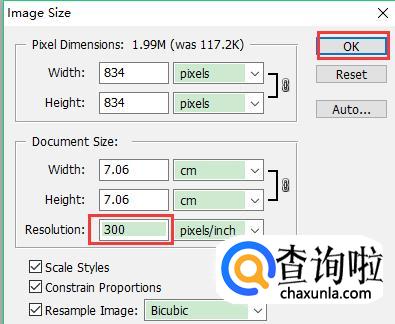 将它修改为300,点击确定,保存修改。图片的像素 就已经修改为300pdi了。