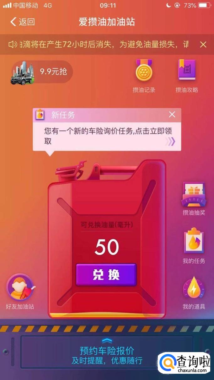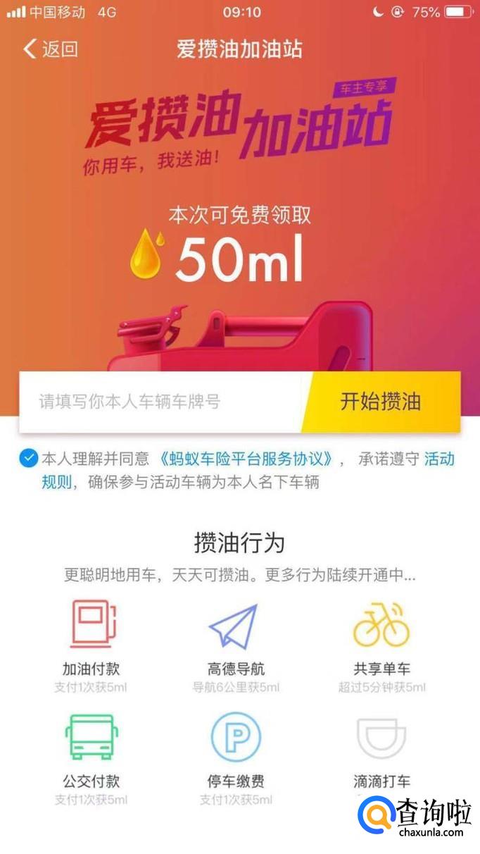 接着输入你的车牌号并点击开始攒油,如下图所示。