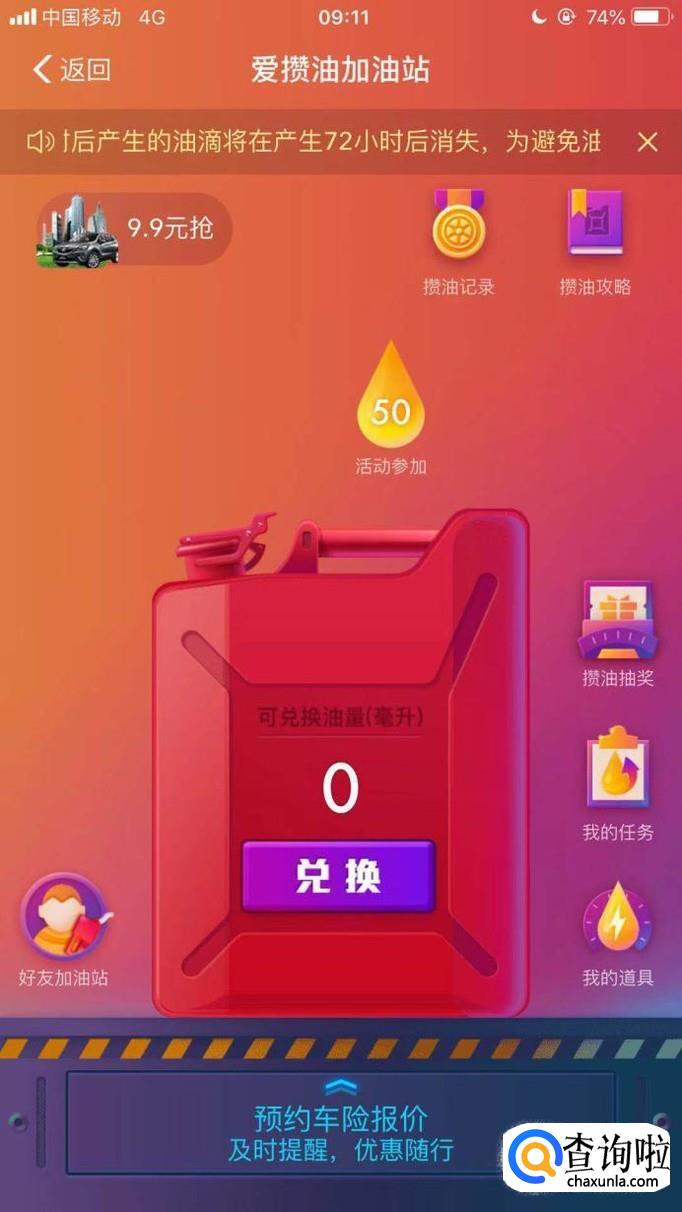 通过以上操作,我们就成功领取了50ml的汽油了。