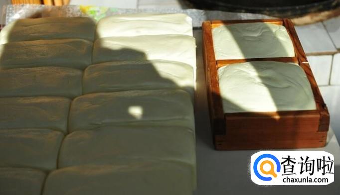 将凝结一天左右的奶豆腐从木制模中取出,然后,将其放置阴凉通风处进行干燥。至此,蒙古奶豆腐就已经制作完成了。