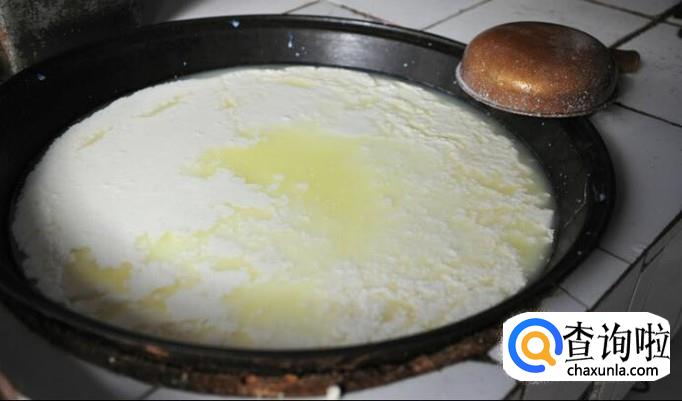首先,将挤出的新鲜牛奶放入一个大桶里面,将其放置在阴凉处一天左右,使其酸化凝固。