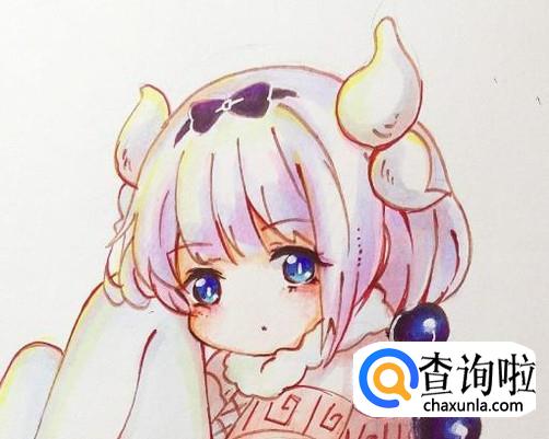 画头发的时候,先用浅色大面积涂色,靠近额头处的发梢和头顶上每一缕头发相交的地方再用深色涂,这样,头发看着就有层次感了。