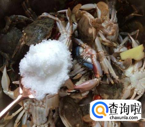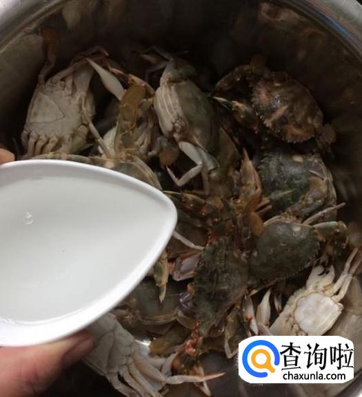 加入适量的白酒,给花盖蟹进行消毒,如图所示。