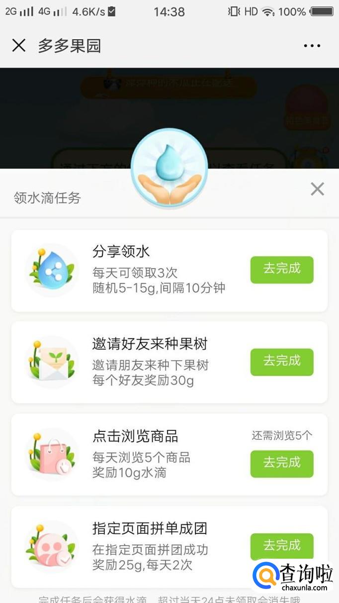 点击领水滴任务,打开一个小的菜单栏,如图所示。