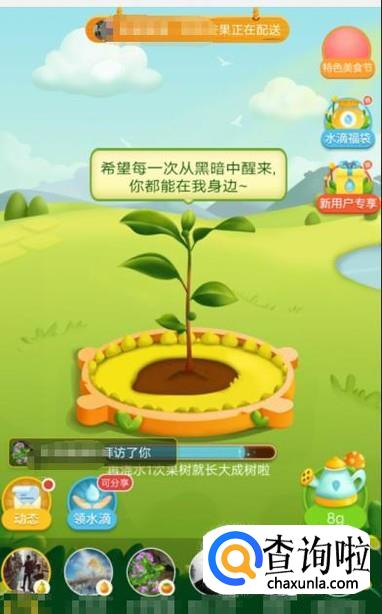 只要按着领水滴里面的任务进行操作,小果树就会慢慢的长大,如图所示。