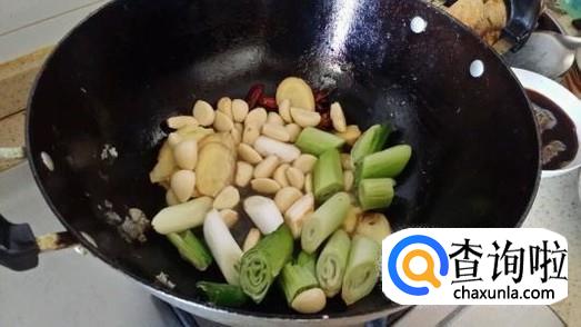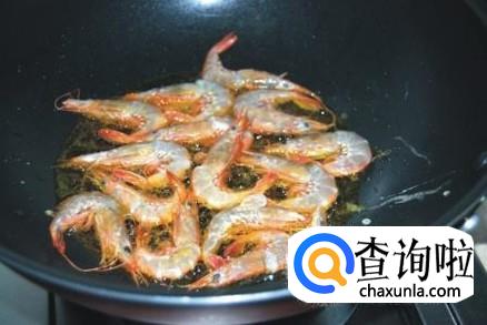 锅中倒入适量油,油热时把虾倒入炒到变色盛起备用。