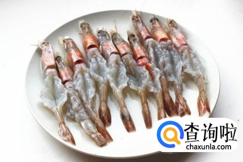 把虾洗干净,去虾须虾枪,挑掉虾线,剪开虾背。