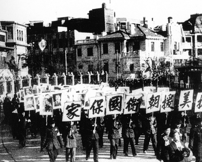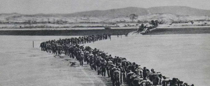 1950年6月25日,朝鲜半岛由于领土争端,爆发了朝鲜战争。9月中旬美帝国主义纠集联合国部队,直扑我鸭绿江边。10月25日我国志愿军雄赳赳,气昂昂跨过鸭绿江,“抗美援朝、保家卫国。”