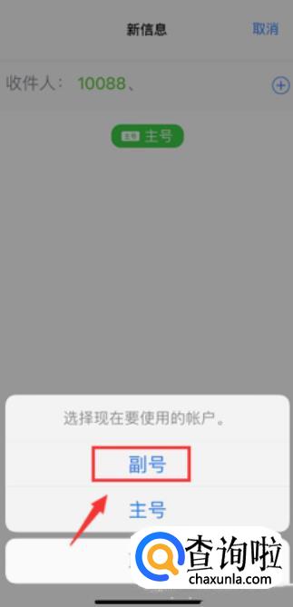 接着,我们点击“主号”,在手机屏幕的下方会弹出副号、主号自主选择的对话框,我们在这里选择“副号”。