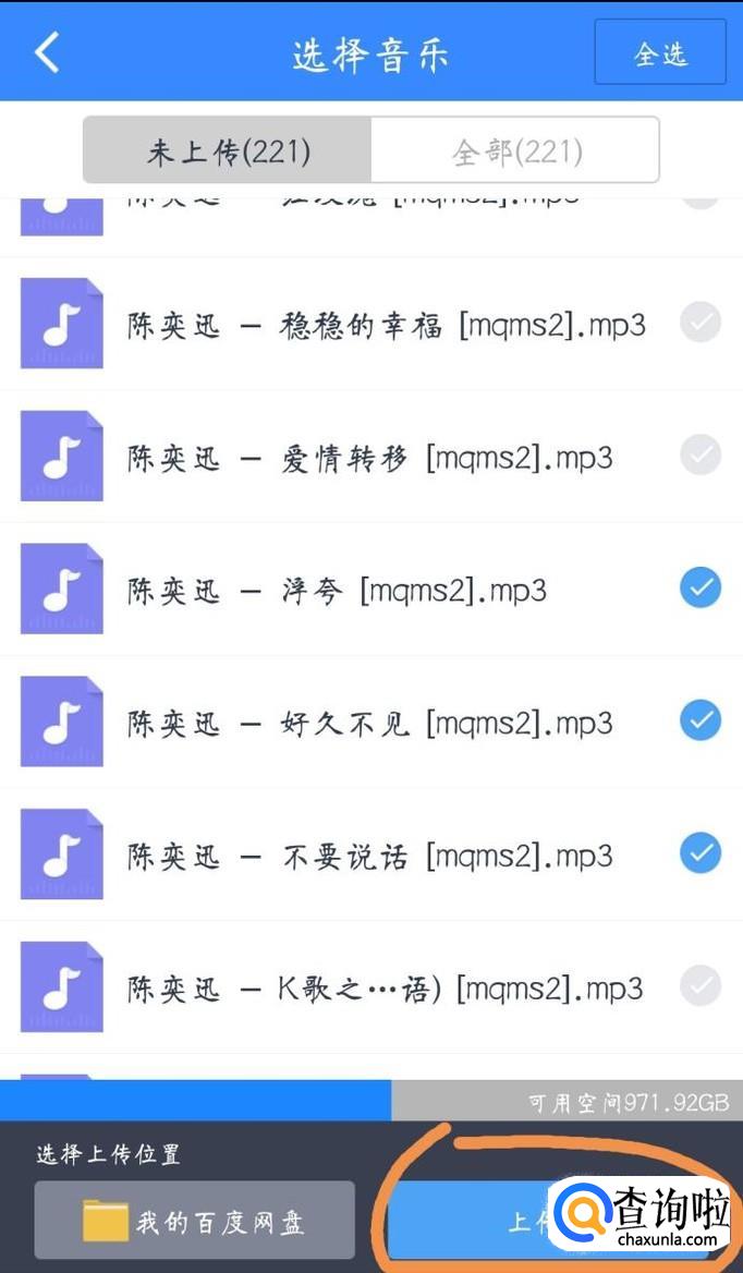 然后选择想要上传的文件类型,这里以音乐为例
