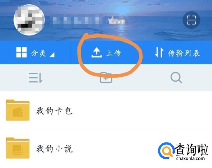 进入百度云的主界面之后,点击任务栏中间的“上传”选项