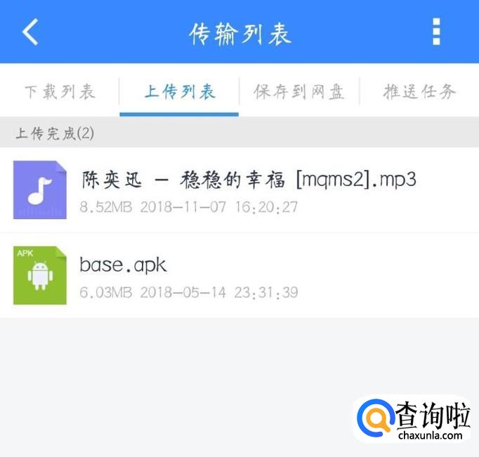 在传输列表里可以查看自己传输的文件