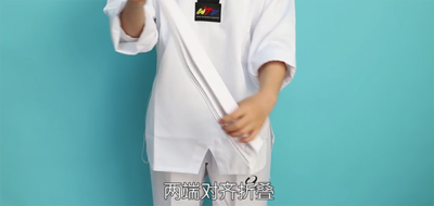 1、选择长度适宜、符合自己技术等级的腰带,两端对齐折叠。