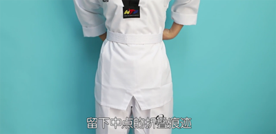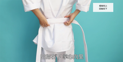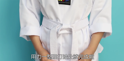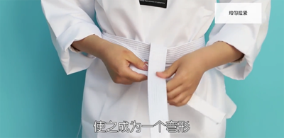 跆拳道是跆拳道练习者水平的象征,也是礼仪的重要组成部分,因此,规范的系跆拳道腰带也是礼仪的一种表现。勿使腰带两端长短不一,这是不恭敬的表现。跆拳道腰带规范系法步骤如下: