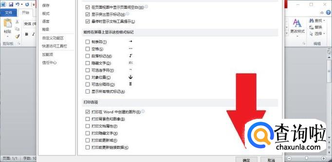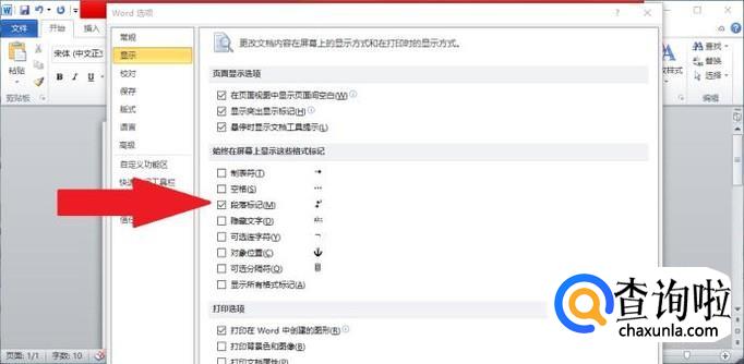 进入“选项”对话框之后,点击进入“显示”设置选项,取消勾选“段落标记”。