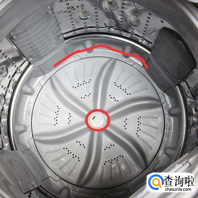 用手把洗衣机波轮往下压,另外在压住外侧,就会出现一个缝,把缝抬大一点,再把鞋带塞进去,塞到中断即可。