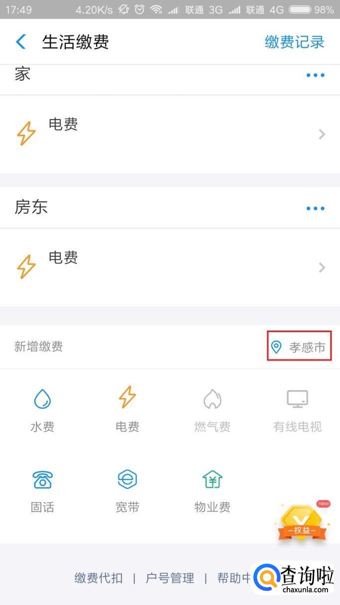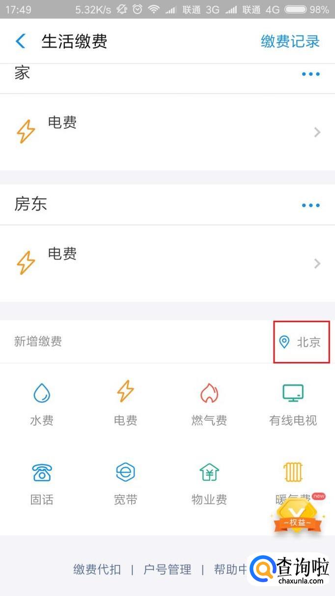最后,我们返回到之前的生活缴费页面,即可在页面中看到生活缴费信息的地理位置已经发生改变了。