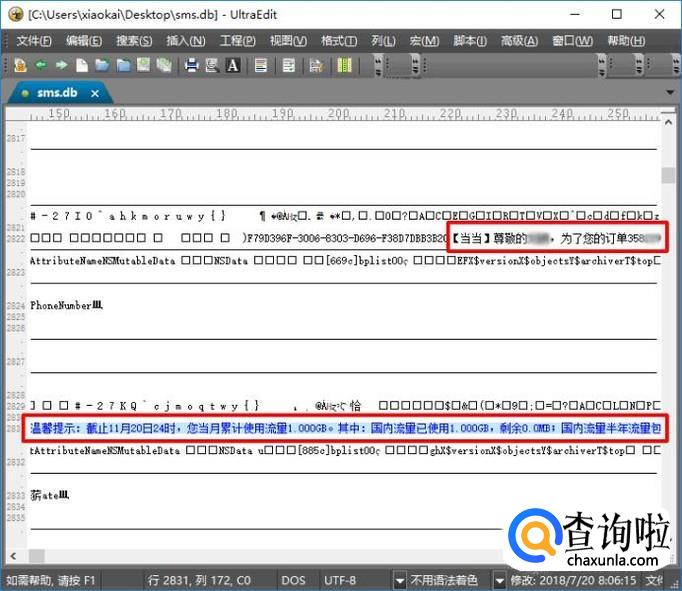 一, 借助UltraEdit软件找回删除的手机短信