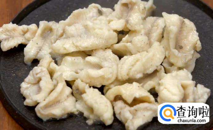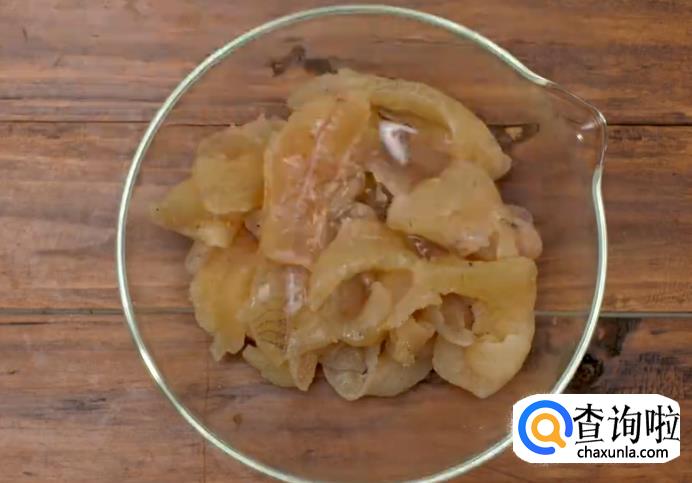将塘鳢鱼的肉撒少许盐、糖、白胡椒粉,将鱼肉抓匀,再放入水淀粉,蛋清挂浆。