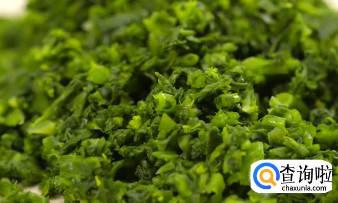 首先将荠菜焯水,冰水过凉,之后切成末备用。