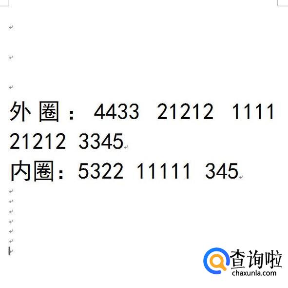 这是外圈跟内圈铺的格数(不包括向内收的那一格),外圈分别是:4433212121111212123345.内圈分别是:532211111345。