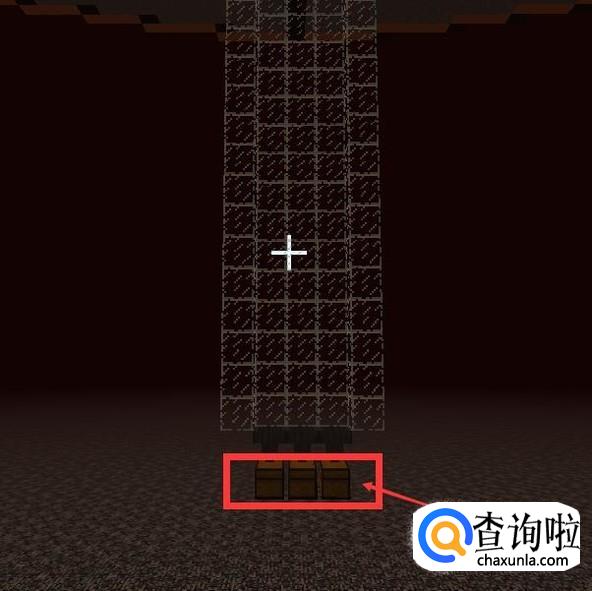 然后在我们之前做的长三宽一的地方,用任意方块(这里我用的玻璃,是为了方便大家观看)向下铺20格。
