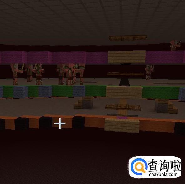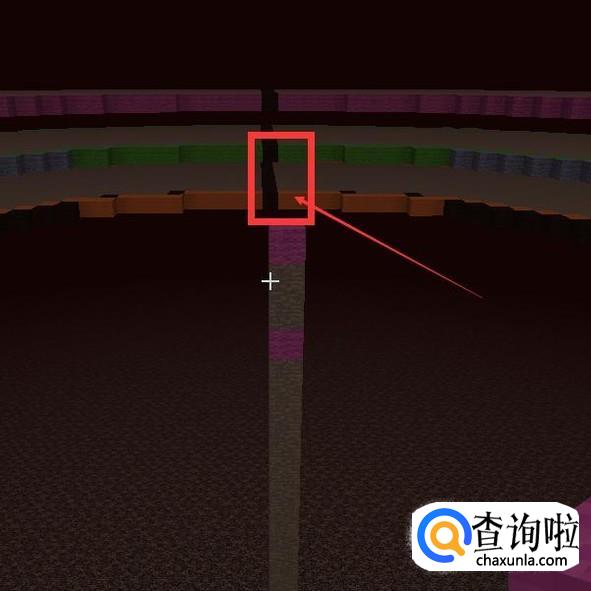 将中心点提高2格,在第三格放置一个【紫色羊毛】