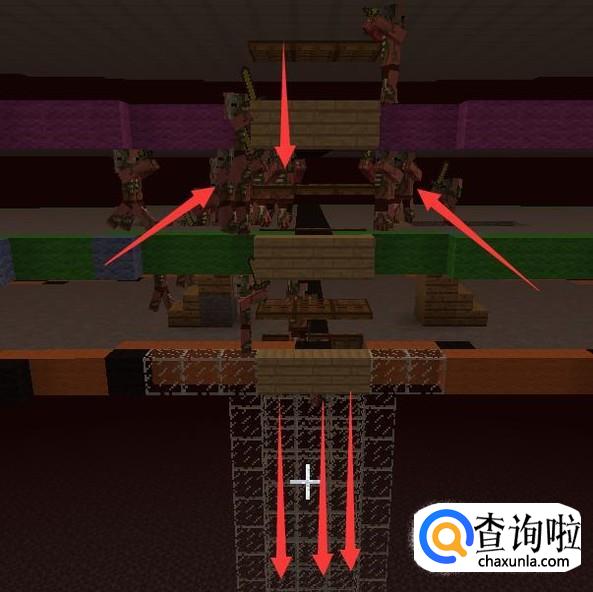 猪人塔原理:利用刷怪原理,我们做的三层圆形区域是最优的刷怪地点,保证每个方块都能刷新出怪物来,我们再利用猪人群体仇恨的原理,攻击猪人,让猪人全部感染仇恨来攻击我们,而猪人会找最近的路来攻击我们,而我们设置的4个陷阱口正好是圆形最近的地方,猪人就会向那个方向跑,而打开的活板门猪人会判定为一个方块,然后踩上去后会掉下去,未打开的活板门的作用是为了防止猪人冲的太猛而越过活板门,保证猪人是百分百掉落到陷阱里面。