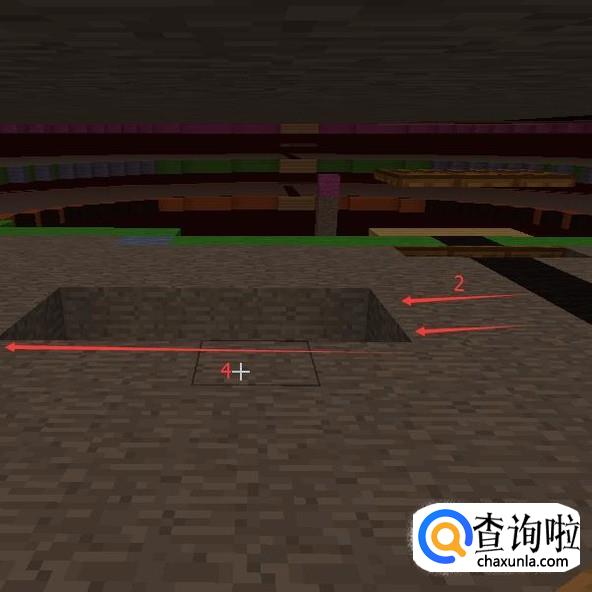 在距离中间这个边两格的地方,向后挖一个长四宽二的空心区域。