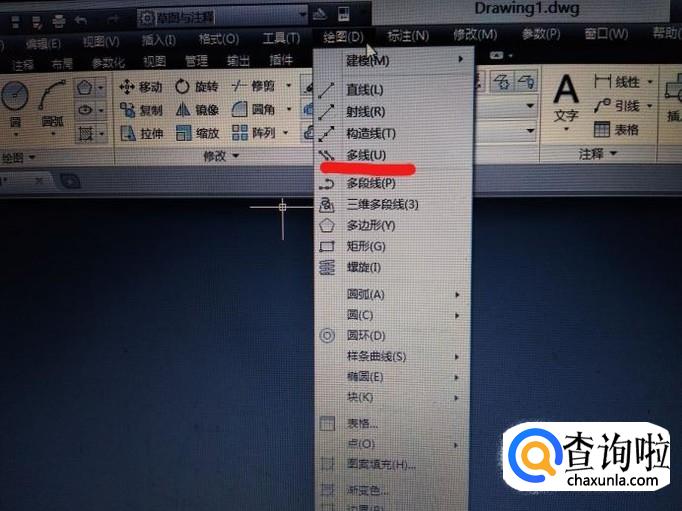 选择菜单栏里面的“绘图”,再选择“多线”。