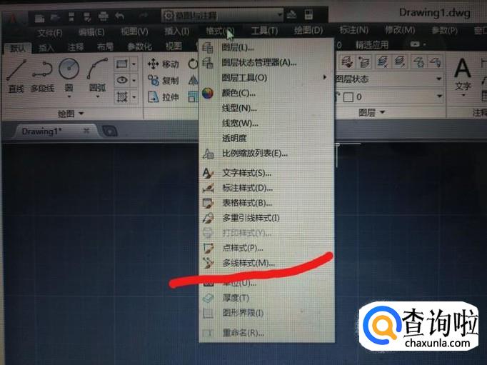 选择菜单栏里面的“格式”,再选择“多线样式”。