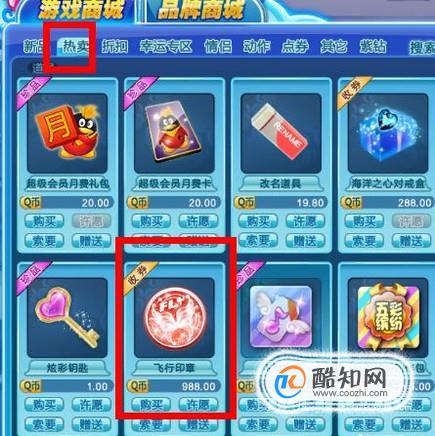 然后点击热卖,热卖里面就有飞行徽章,点击购买就可以了,我们也可以通过八音宝盒里面抽取。
