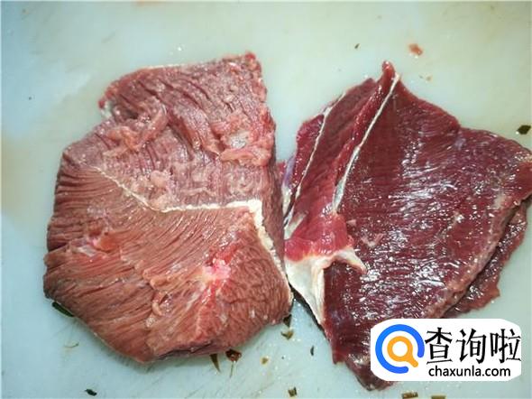 将牛肉切成片状,不要切太大或太厚。