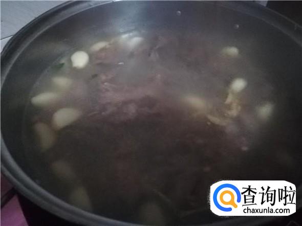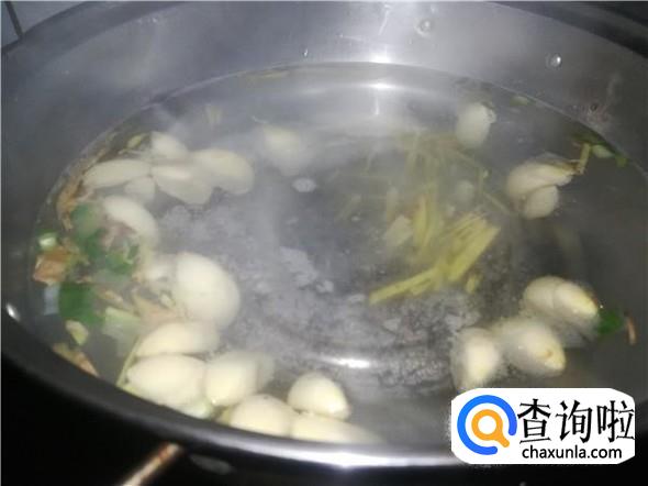 在锅里倒入适量的水,如果是一家三口人的话倒入750ML。煮热之后就直接倒入姜丝和大蒜,然后盖上锅盖煮大概十五分钟,直到大蒜熟了为止。