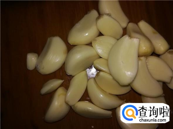 剥大量的蒜,大概要一到两朵,要完整的剥开,不要拍碎剥。