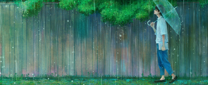 8、又是一个下雨天,一人一伞。绿草在野,风雨漫漫。
