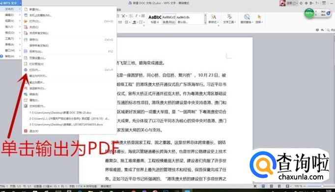 找到并单击“输出为PDF”选项。