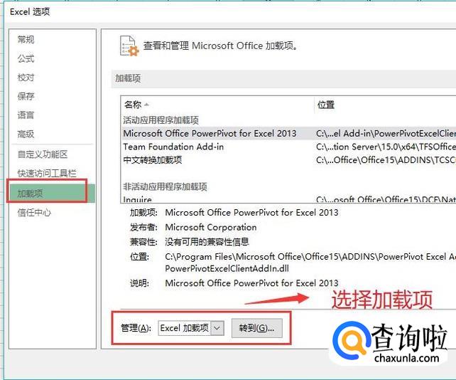 然后在弹出的Excel选项界面中我们点击加载项选项,选择Excel加载项,点击转到按钮,如下图所示