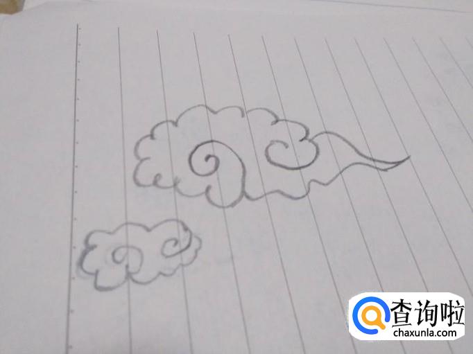 先画一个大致的白云轮廓,用波浪线画一个云朵。
