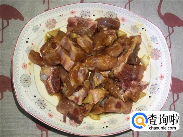 排骨清洗干净,把姜蒜一起放入排骨中,加入适量的花生油、酱油、蚝油、料酒、少许盐,腌制半小时。